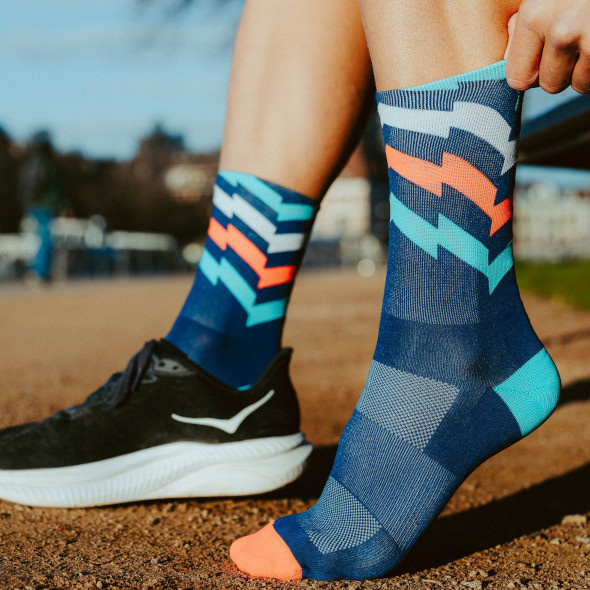 JEDNYM ZDANIEM: Incylence Ultralight Waves Tricolore to wysokie skarpety wykonane z oddychającej i ultralekkiej mikrofibry Dryarn®, które świetnie nadają się do biegania latem z dodatkową wyściółką w obszarze palców i pięty zapewniająca doskonałą amortyzację, wsparcie oraz trwałość.