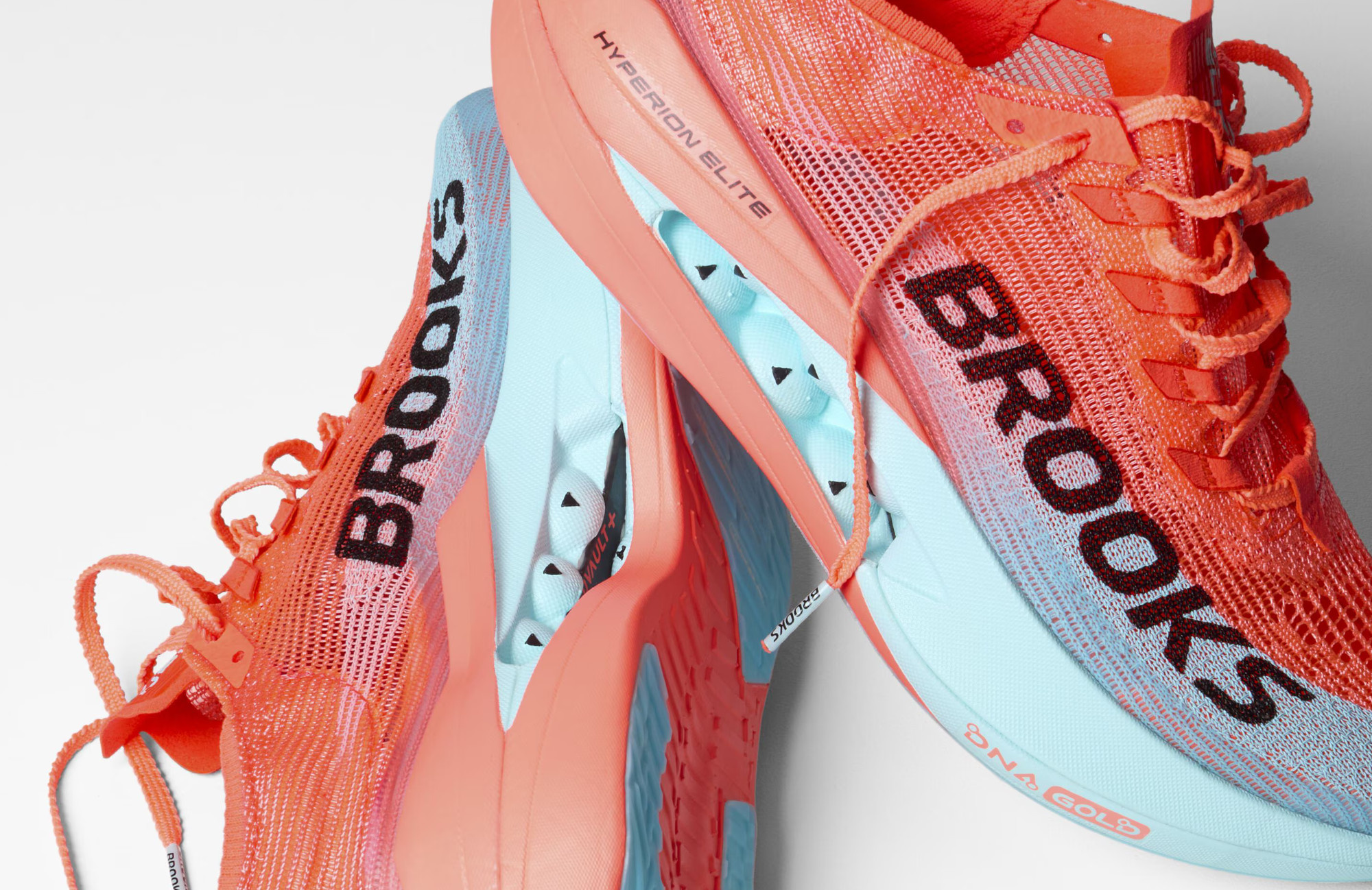 Podeszwa środkowa Brooks Hyperion Elite 5 wykorzystuje najnowszą piankę DNA GOLD wykonaną w 100% z PEBA, oferującą ultralekką amortyzację i maksymalny zwrot energii. Jej sprężysta struktura pozwala na dynamiczne wybicie przy każdym kroku, wspierając utrzymanie wysokiego tempa biegu. W konstrukcję wkomponowano płytkę SpeedVault+ z włókna węglowego, która nadaje optymalną sztywność i stabilność podczas długich dystansów.