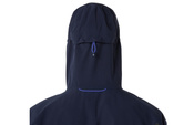 Dopasowany kaptur ze sportowym daszkiem oraz gumową linką do regulacji gwarantuje stabilne dopasowanie i ochronę w niesprzyjających warunkach. Dodatkowa regulacja umieszczona centralnie z tyłu kaptura pomaga ograniczyć rozproszenie uwagi i poprawia komfort podczas biegu. Funkcjonalność uzupełnia praktyczny system kieszeni – boczne kieszenie na niezbędne drobiazgi oraz kopertowa kieszeń na piersi zapinana na zamek, idealna na klucze czy kartę.