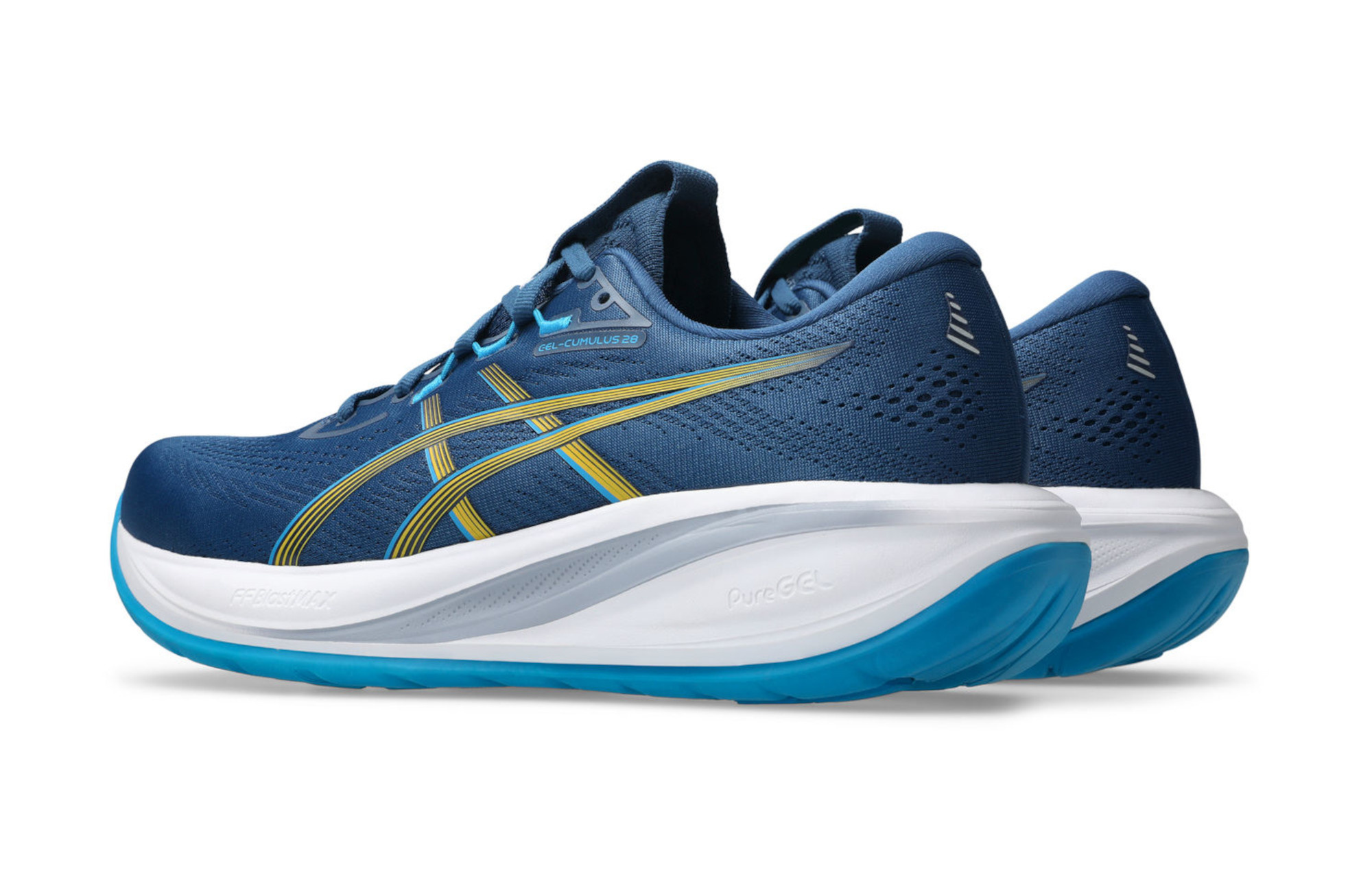 JEDNYM ZDANIEM: Asics Gel-Cumulus 28 w porównaniu do poprzedniej wersji oferuje nową, bardziej sprężystą piankę FF Blast Max, płynniejsze przetaczanie stopy dzięki zmienionej geometrii, lepiej dopasowaną cholewkę i trwalszą podeszwę zewnętrzną, zachowując przy tym neutralny charakter i 8-milimetrowy drop.
